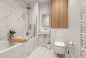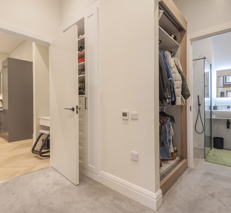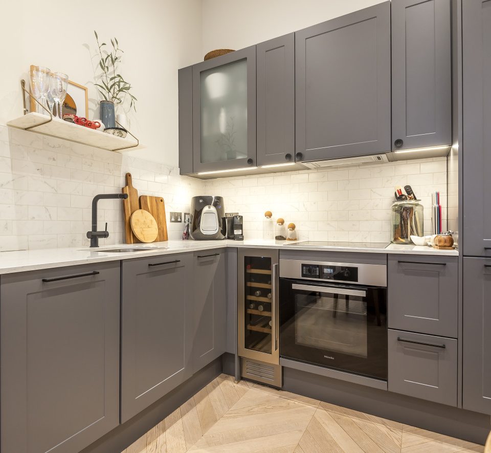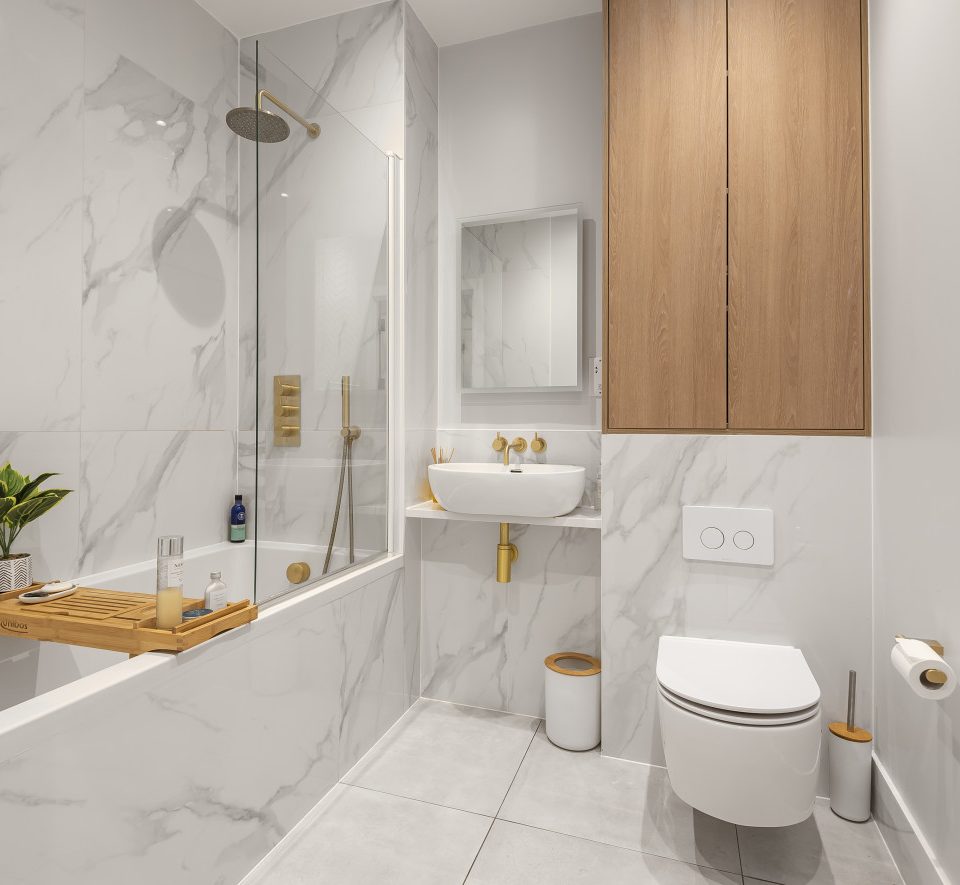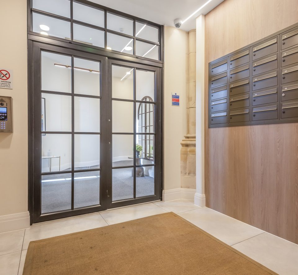 The apartment measures approx 698 sq ft and comprises spacious living room/open plan fitted kitchen with built in desk area, guest bathroom, master bedroom with en-suite, walk in wardrobe and stunning Crittall glass wall looking onto the living room. Other features include a LARGE PRIVATE TERRACE and an ALLOCATED PARKING SPACE to the front.